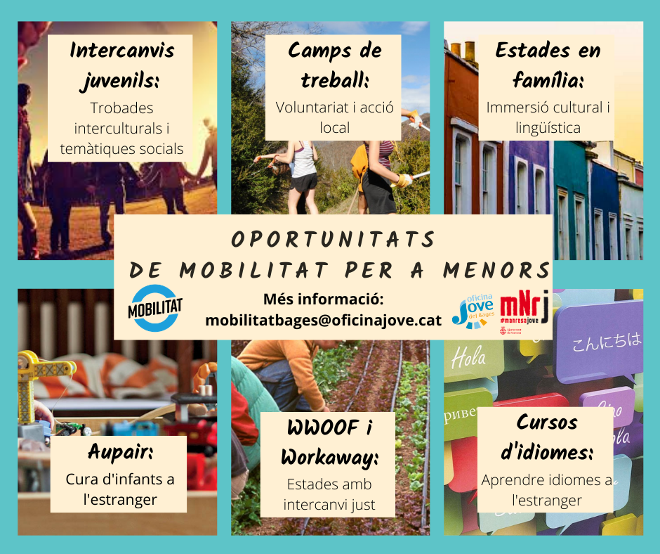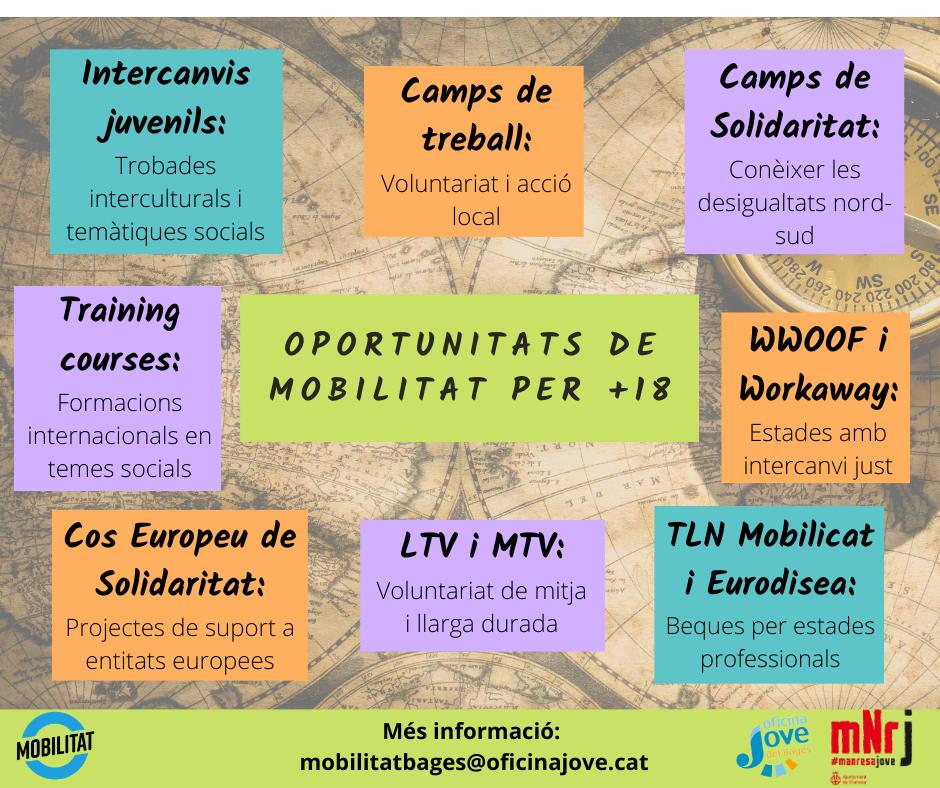 Aprofita les oportunitats de formació i voluntariat arreu d’Europa i del món. Les oportunitats són per a menors i per a majors d’edat, així que no t’ho pensis més. Per més informació: Assessoria de mobilitat (